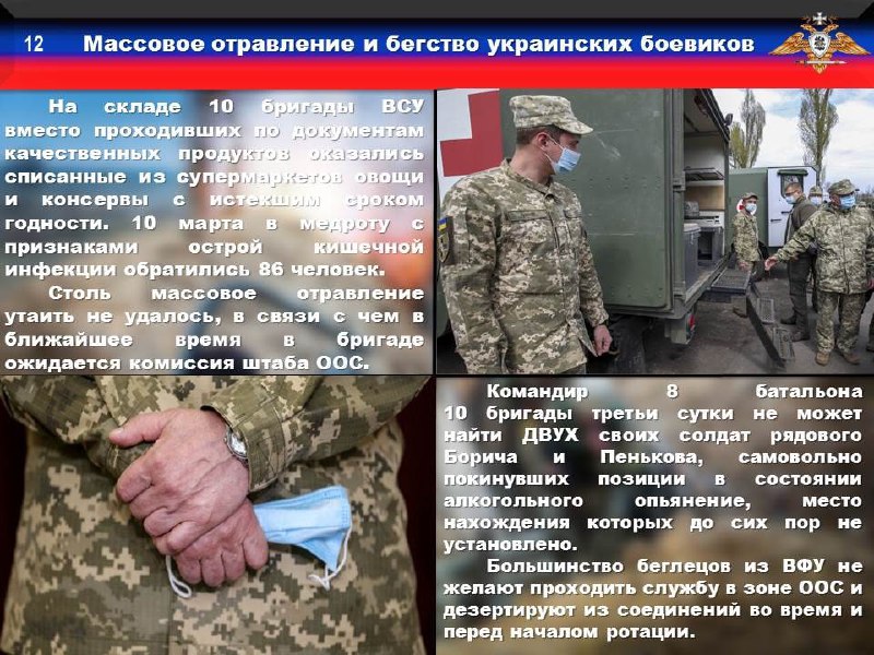 ♦️Несмотря на усилия комбрига Котлика по сокрытию данного факта, столь массовое отравление утаить не удалось, в связи с чем в ближайшее время в бригаде ожидается работа комиссии тыла штаба ООС.
