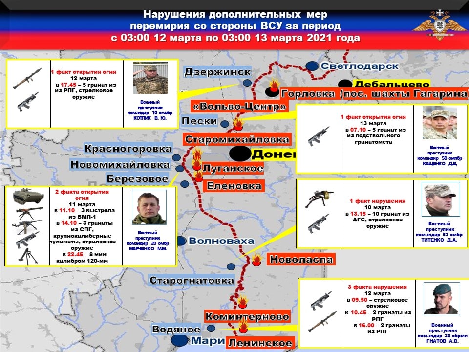 ⭐️🕙⭐️ Сводка официального представителя УНМ ДНР на 13 марта 2021 года