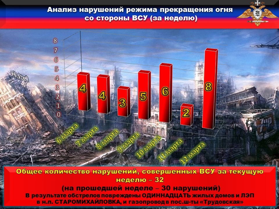 ❗️За сутки с 14 на 15 марта противник продолжил совершать огневые провокации, нарушая ВТОРОЙ пункт дополнительных мер по контролю