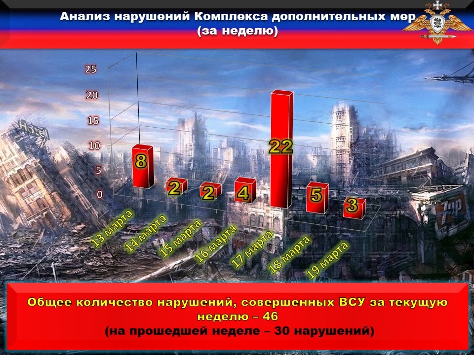 Общее количество нарушений, совершенных ВСУ за текущую неделю составляет 6 нарушений.