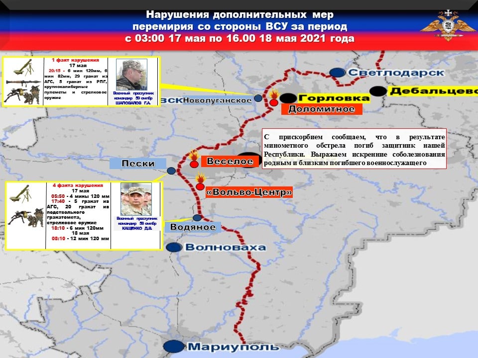 ❗️Данные факты нарушений со стороны украинских боевиков также подтверждаются наблюдателями Миссии ОБСЕ в своем отчете за 18.05.2021 г.