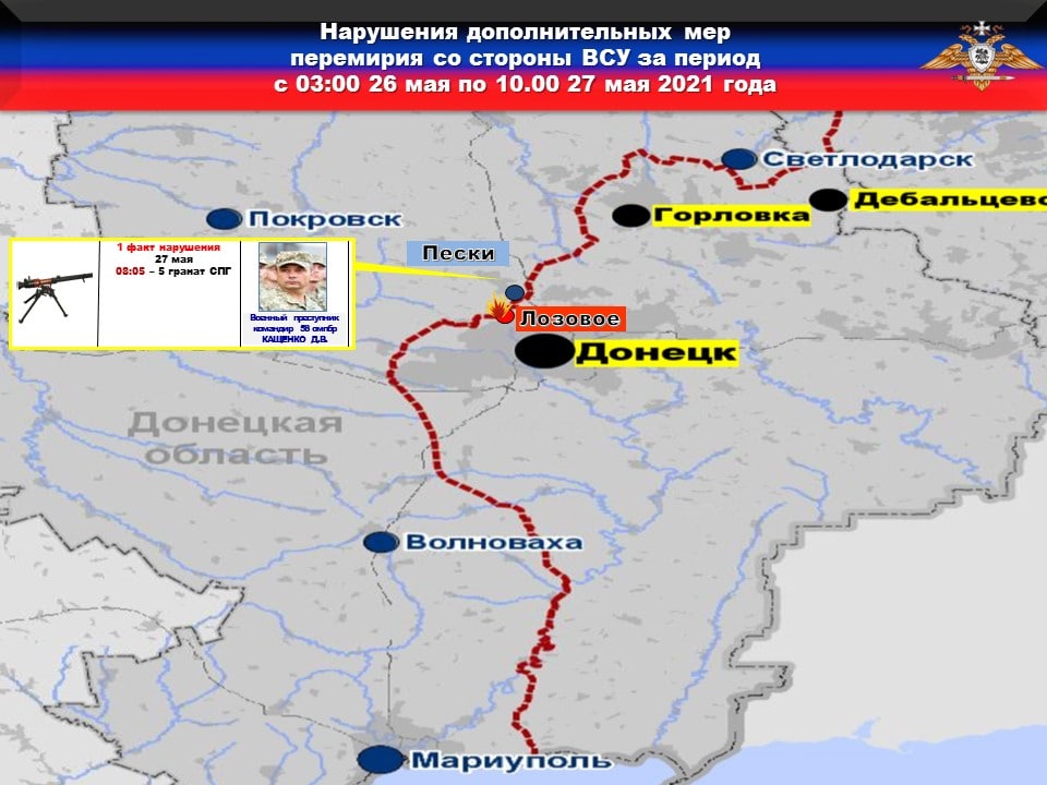 ❗️Данные факты нарушений со стороны украинских боевиков также подтверждаются наблюдателями Миссии ОБСЕ в своем отчете за 27.05.2021 г.