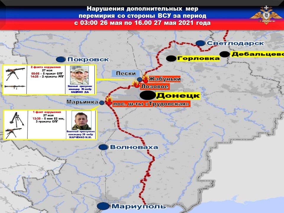 ❗️Данные факты нарушений со стороны украинских боевиков также подтверждаются наблюдателями Миссии ОБСЕ в своем отчете за 27.05.2021 г.