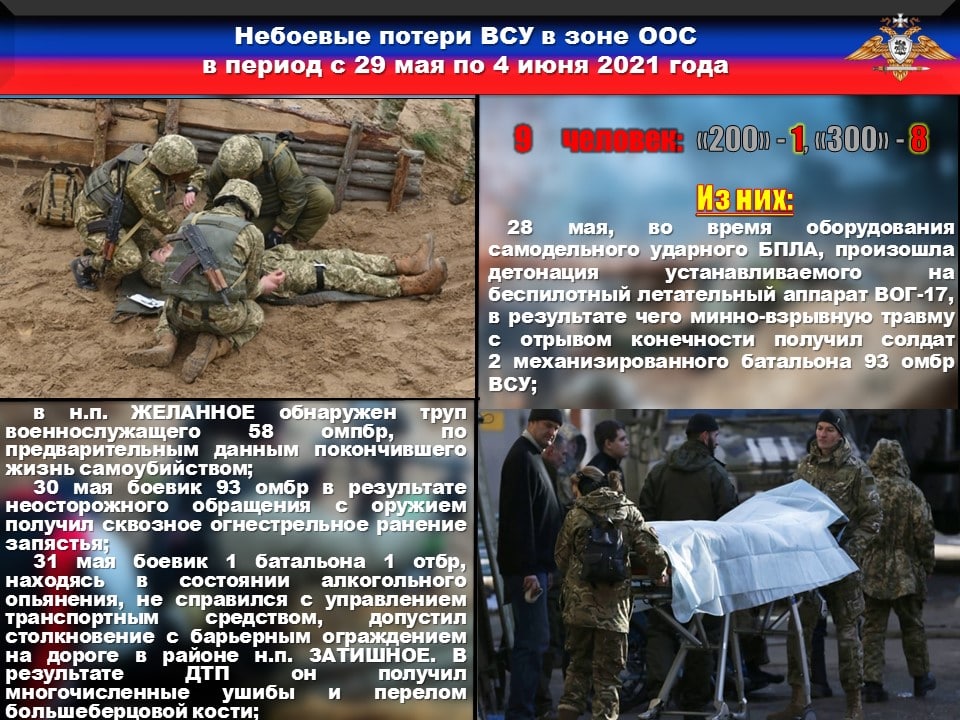 ➖30 мая боевик 93 бригады в результате неосторожного обращения с оружием получил сквозное огнестрельное ранение запястья;