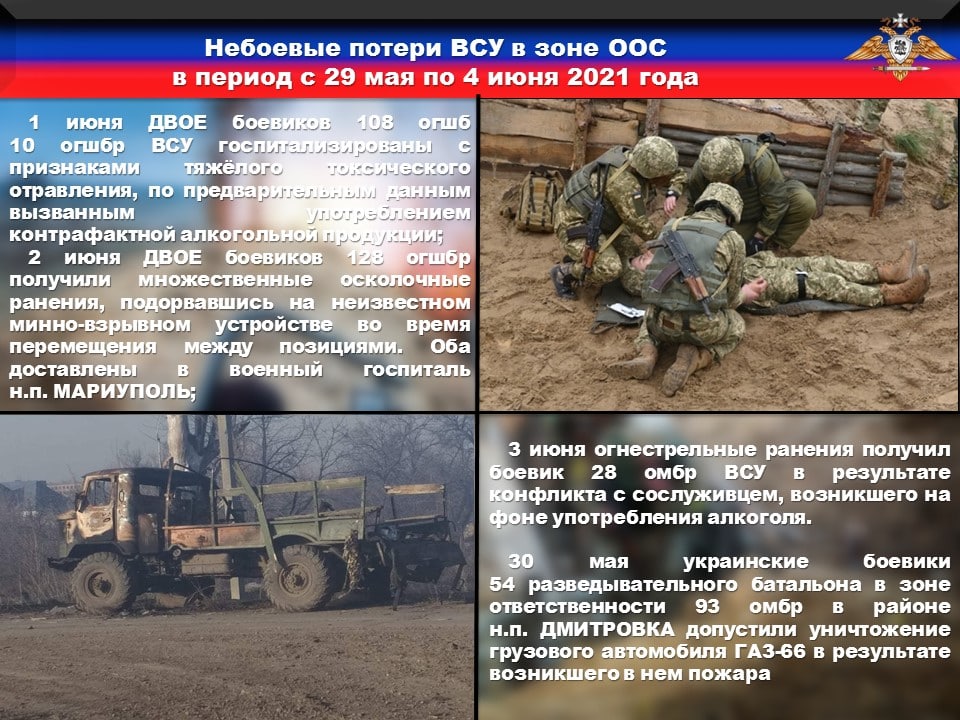 ➖3 июня огнестрельные ранения получил боевик 28 бригады в результате конфликта с сослуживцем, возникшего на фоне употребления алкоголя.