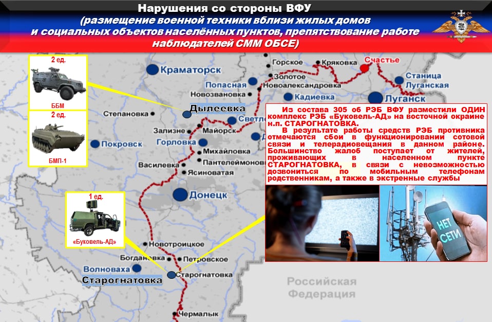 ♦️Украинская сторона также применяет средства РЭБ для блокирования работы БпЛА СММ ОБСЕ. Так, с целью недопущения обнаружения запрещенного вооружения 10, 93 и 128 бригад ВСУ зафиксировано активное применение станций радиоподавления каналов управления и навигации БпЛА «Буковель-АД» из состава мобильных групп 20 и 305 отдельного батальона РЭБ в районах н.п. СТЕПАНОВКА, ЧЕРМАЛЫК и ЛЕБЕДИНСКОЕ.