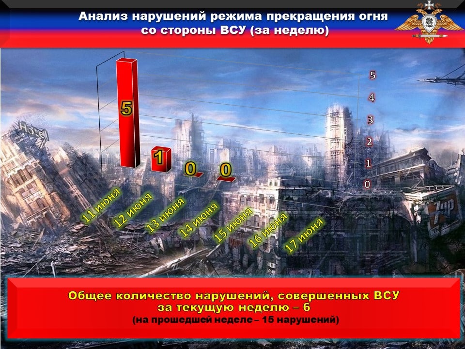 ❗️За прошедшие сутки со стороны украинских боевиков зафиксировано ШЕСТЬ нарушений ВТОРОГО пункта Комплекса дополнительных мер по контролю за соблюдением режима прекращения огня.