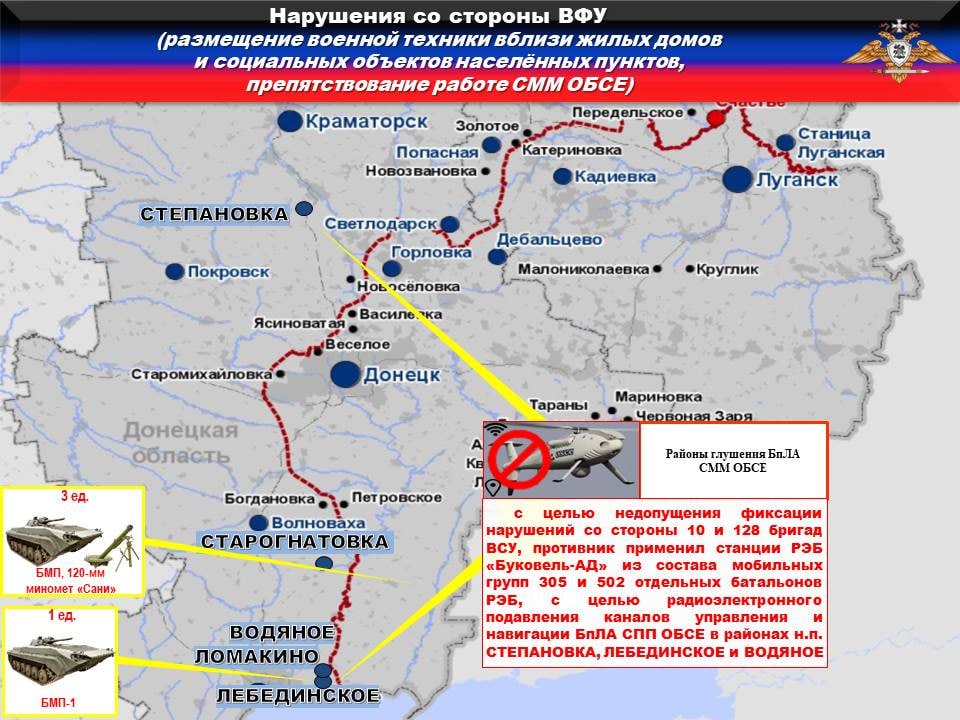 ❗️Украинская сторона продолжает целенаправленно препятствовать работе международных наблюдателей, блокируя работу БпЛА СММ ОБСЕ. Так, с целью недопущения фиксации нарушений со стороны 10 и 128 бригад ВСУ, противник применил станции РЭБ «Буковель-АД» из состава мобильных групп 305 и 502 отдельных батальонов РЭБ, с целью радиоэлектронного подавления каналов управления и навигации БпЛА СПП ОБСЕ в районах н.п. СТЕПАНОВКА, ЛЕБЕДИНСКОЕ и ВОДЯНОЕ.