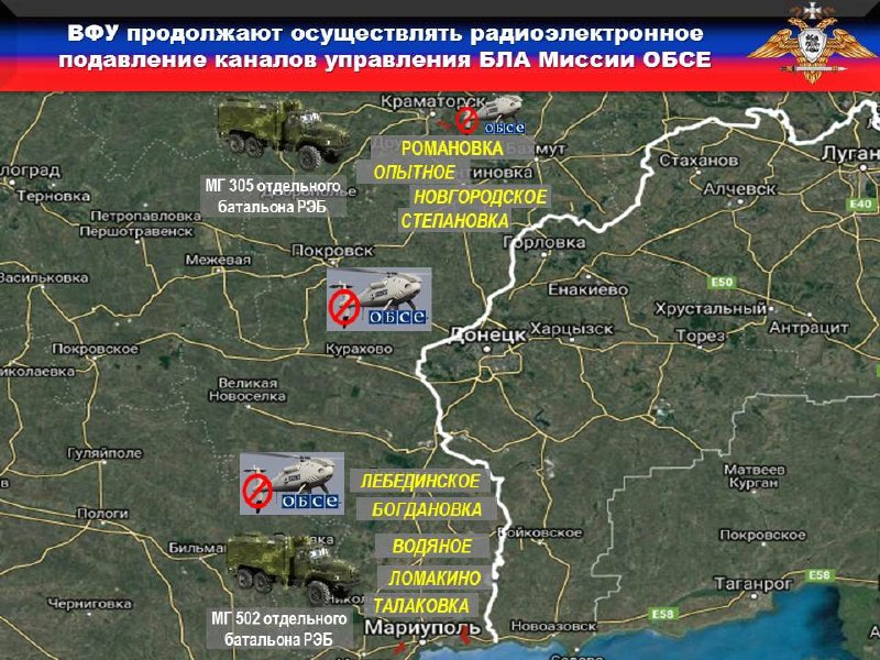 🚫Так, с целью недопущения фиксации нарушений со стороны 10, 58, 72, 128 и 93 бригад ВСУ, противник применил станции радиоэлектронного подавления каналов управления и навигации БпЛА «Буковель-АД» из состава мобильных групп 305 и 502 отдельных батальонов РЭБ. За неделю зафиксировано ДЕСЯТЬ фактов подавления каналов управления и навигации БпЛА международных наблюдателей в районах н.п. РОМАНОВКА, ОПЫТНОЕ, СТЕПАНОВКА, НОВГОРОДСКОЕ, ВОДЯНОЕ, ЛЕБЕДИНСКОЕ, ЛОМАКИНО, ТАЛАКОВКА и БОГДАНОВКА.