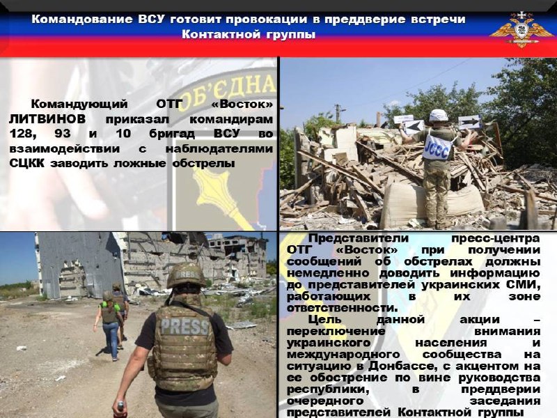 ♦️В преддверии начала видеоконференции Контактной группы 7 июля, нам поступает информация о готовящейся украинским представительством в СЦКК совместно с командованием ОТГ «Восток» провокации в отношении подразделений НМ ДНР.