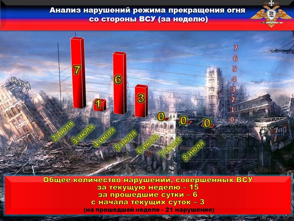 💥Так, за прошедшие сутки со стороны украинских боевиков зафиксировано СЕМЬ нарушений ВТОРОГО пункта Комплекса дополнительных мер по контролю за соблюдением режима прекращения огня.