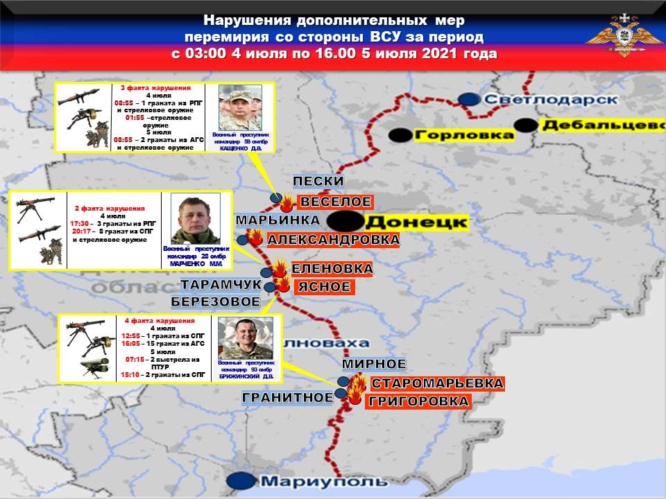 ⭐️🕙⭐️ Сводка официального представителя НМ ДНР по состоянию на 21:00 4 июля 2021 г.