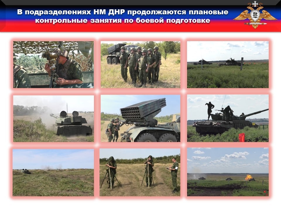 🔹На следующей неделе контрольные занятия на полигонах по предметам боевой подготовки продолжатся, и к ним будут привлечены другие подразделения Народной Милиции – связи, разведки, ПВО и РЭБ, а также снайперы и расчеты противотанковых ракетных комплексов.
