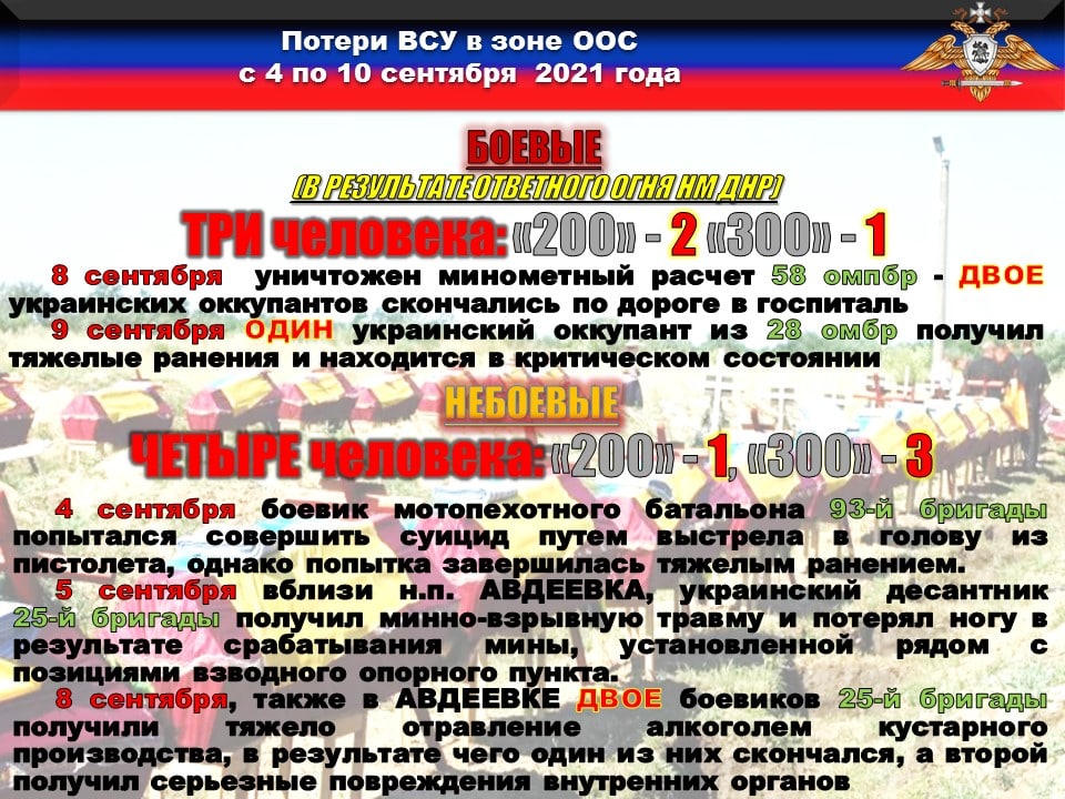 ➖4 сентября боевик мотопехотного батальона 93-й бригады попытался совершить суицид путем выстрела в голову из пистолета, однако попытка завершилась тяжелым ранением.