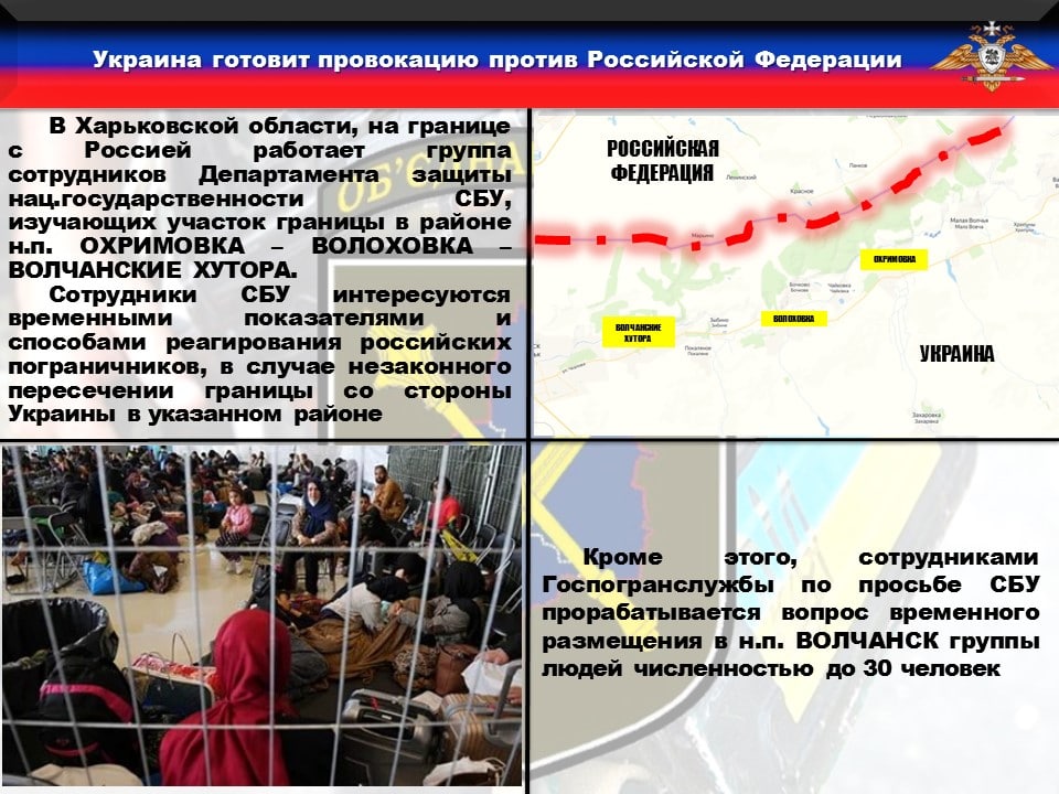 ❗️Кроме этого, сотрудниками Госпогранслужбы по просьбе СБУ прорабатывается вопрос временного размещения в н.п. ВОЛЧАНСК группы людей численностью до 30 человек.