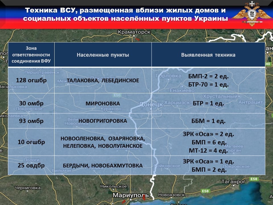 🚫В нарушение ТРЕТЬЕГО пункта дополнительных мер, выявлено размещение ДЕСЯТИ единиц вооружения и военной техники 93 бригады вблизи жилых домов и муниципальных объектов на подконтрольной Украине территории.
