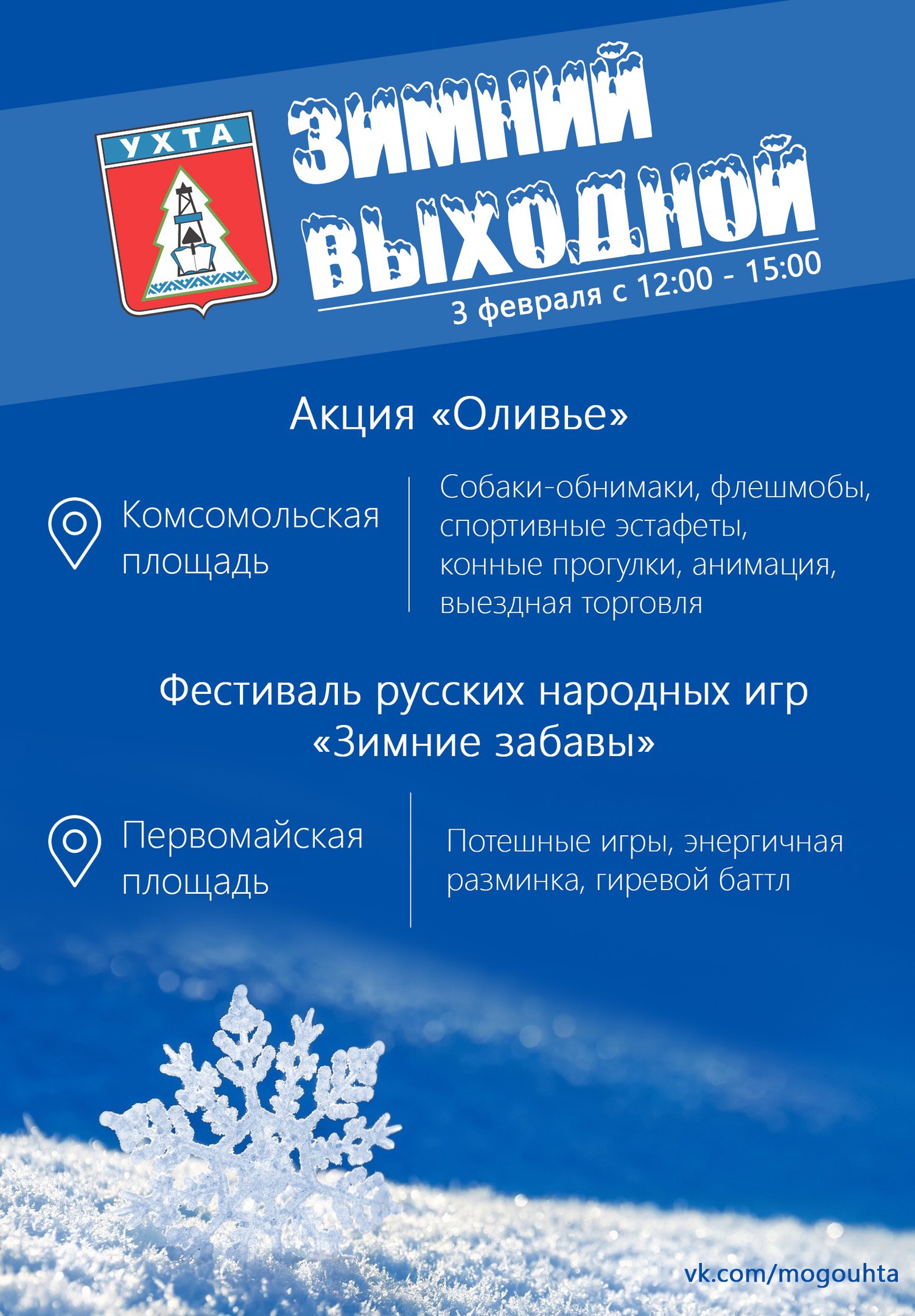 Губернаторы меняются, методы остаются. Вот такую афишу мы увидели сегодня. 3 февраля в Ухте будет проходить праздник на двух главных площадях города. Потешные игры, эстафеты, собаки-обнимаки. И так случайно совпало, что в этот же день планируется митинг против строительства полигона для московского мусора около Шиеса. А помните, что было в декабре 2011 года после выборов в Госдуму. Чтобы молодежь на пошла на митинги, в Сыктывкаре бесплатно пускали на каток, раздавали билеты в кино, устраивали уличные гуляния. Гапликов видимо плохо выучил уроки Гайзера.