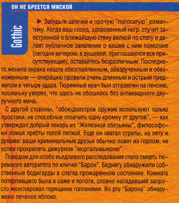На всякий случай, никаких баронов с печеным яблоком в игре нет. EXE вообще отличались умением говорить об играх не как есть, а как-то по касательной. Главное: ощущение передают? Вполне. Тут любые претензии к фактике отпадают, у автора своя волна.