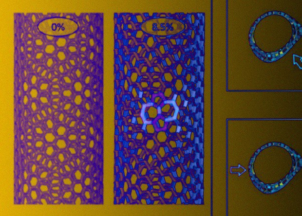 Группа ученых из Китая, Японии, России и Австралии научилась менять свойства углеродных нанотрубок с металлических на полупроводниковые. Благодаря растяжению и нагреванию с помощью тока в нанотрубке образуются дефекты, которые затем скользят по ее поверхности и меняют ее структуру, что и приводит к изменению свойств