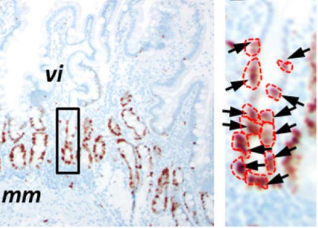 Мы привыкли думать, что чем старше человек, тем больше в его клетках мутаций и тем выше риск развития рака. Однако после определенного возраста заболеваемость раком падает. Ученые нашли решение этого парадокса: у пожилых людей клетки делятся реже, поэтому мутации копятся медленнее. Это предположение они подтвердили, посчитав делящиеся клетки в кишечнике молодых и старых людей. А у мышей эта закономерность не работает: клетки делятся всегда с одной скоростью, и опухолей у пожилых мышей меньше не становится