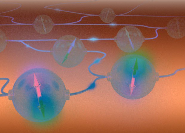 Для создания квантового интернета ученым предстоит научиться передавать квантовые запутанные состояния на большие расстояния. Физикам из Китая удалось запутать два узла квантовой памяти через оптоволокно длиной 50 километров — ранее ученым не удавалось построить запутанное состояние такого масштаба. Для создания квантовых корреляций между узлами, каждый из которых содержал 100 миллионов охлажденных атомов, ученые использовали фотоны на телекоммуникационных частотах. Этот эксперимент открывает дорогу к созданию крупномасштабных квантовых сетей, что может помочь развитию квантовых коммуникаций