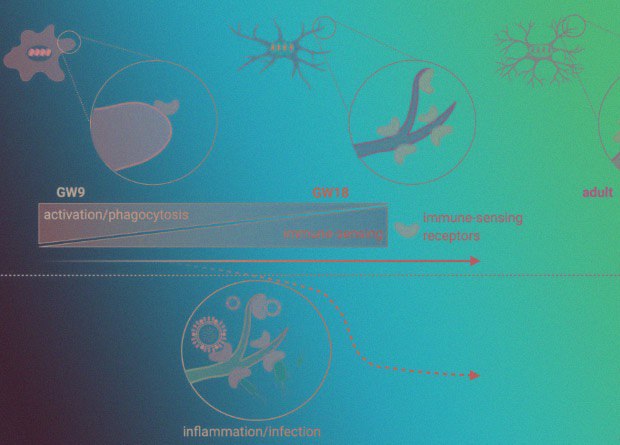 Порой еще можно услышать, что в головном мозге нет никаких иммунных клеток, но это не так. Более того, один из типов клеток иммунной системы, микроглия, попадает туда едва ли не раньше всех и играет ключевую роль в развитии мозга. Когда и как созревает сама микроглия, было известно для мышей, но не для людей. Теперь ученые из Бельгии и Нидерландов закрыли этот пробел, и оказалось, что уже к восемнадцатой неделе внутриутробного развития человеческая микроглия приобретает «взрослые» свойства. Вероятно, потому некоторые воздействия на организм на ранних сроках беременности так плохо сказываются на здоровье нервной системы, что они мешают микроглии правильно развиваться
