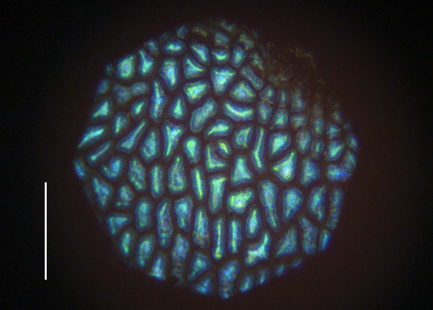 Лавролистная калина — одно из относительно немногих растений, чьи плоды окрашены в синий цвет. Ученые знают, что такая окраска предназначена для привлечения птиц — распространителей семян, однако ее природа долгое время оставалась неизвестной. Новое исследование позволило ответить на этот вопрос. Оказалось, что синий цвет плодов калины обеспечивается специальной светоотражающей структурой, которая располагается в верхних слоях околоплодника и состоит из неупорядоченных липидных пузырьков. Дополнительную насыщенность цвету придает залегающий ниже темно-красный пигмент антоциан. Ранее такой тип структурной окраски у растений не отмечался