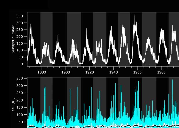 Хотя о том, что геомагнитные возмущения связаны с циклами солнечной активности, известно уже сравнительно давно, для наиболее мощных магнитных бурь отследить такую связь непросто — самые интенсивные события случаются очень редко, из-за чего их сложно статистически анализировать. Теперь британские физики справились с этим анализом: они проследили за корреляциями числа солнечных пятен и частотой экстремальных магнитных бурь за последние 150 лет и спрогнозировали вероятность мощных возмущений на ближайшее десятилетие