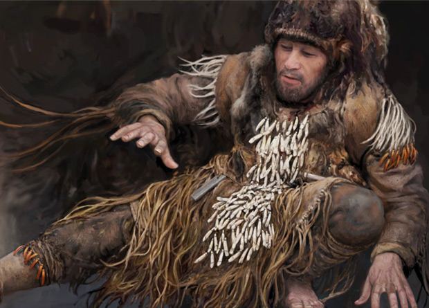 В погребениях мезолитического могильника в Карелии во время раскопок нашли необычно большое количество лосиных зубов. Характерные потертости на эмали породили предположения, что резцы подвешивали к одежде в качестве перкуссионного музыкального инструмента. Чтобы проверить гипотезу, археологи раздобыли у охотников лосиные зубы и собрали из них шумовое одеяние, подобное найденным в мезолитическом могильнике. Наряд, издающий при движении дребезжание и шум, испытали в повседневной жизни и многочасовых танцах