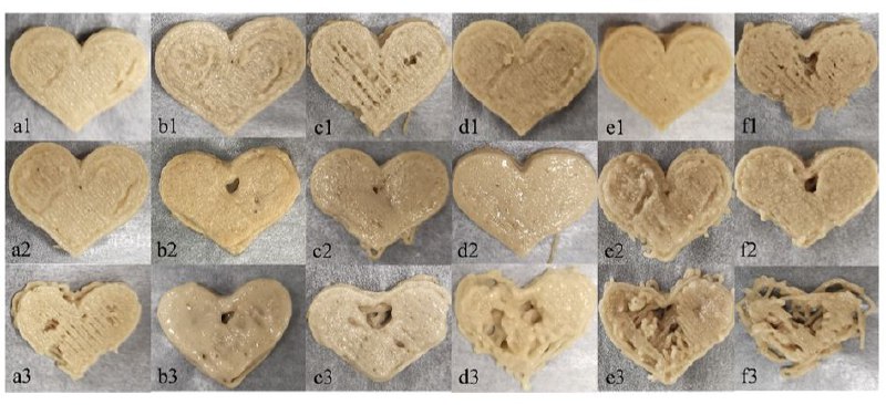 В последнее время технологиям 3D-печати стали уделять большое внимание в пищевой промышленности, в том числе в производстве растительного мяса. Китайские ученые решили создать смесь для печати аналогов мяса на основе соевого белка и пшеничного глютена. Результаты экспериментов показали, что добавление какао-масла и эмульгатора Твин-80 улучшает точность печати и стабильность готовых изделий