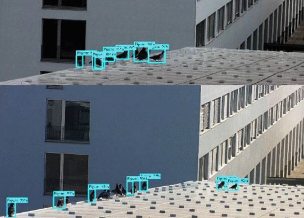 Швейцарцы научили дрон сгонять голубей с крыш. Они использовали для этого камеру на крыше, которая распознает голубей, рассчитывает их координаты и посылает туда квадрокоптер