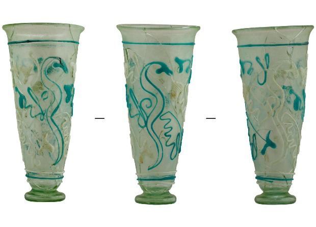Археологи нашли в Крыму редкий стеклянный кубок, украшенный змеевидным орнаментом. Его обнаружили в погребении взрослой женщины конца II — середины III века нашей эры