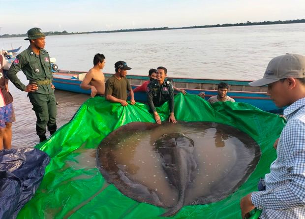 Во-о-от такого ската поймал камбоджийский рыбак в реке Меконг — и это не хвастливая рыбацкая небылица. Как только мужчина выловил огромную рыбу, он обратился к специалистам из исследовательского проекта FISHBIO Wonders of the Mekong, которые занимаются изучением экосистемы Меконга.