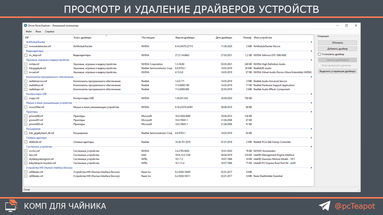 Просмотр и удаление драйверов устройств
