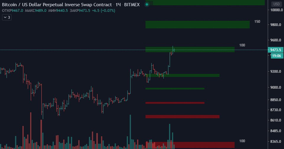☑️ Биткоин (BTC) торгуется на уровне 9500-9600 (биржа Binance)