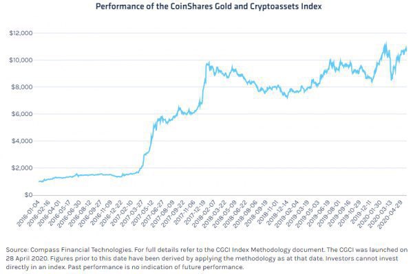 Исследования и испытания CGCI проводились в паре с Имперским колледжем Лондона в течение двух лет. За это время в CoinShares пришли к выводу, что индекс на основе золота и криптовалют опережает каждый из активов по отдельности в соотношении рисков и доходности.