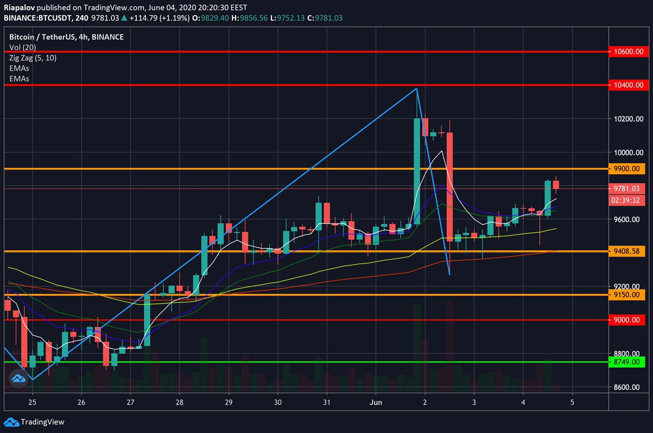 ☑️ Биткоин (BTC) торгуется на уровне 9600-9800 (биржа Binance)