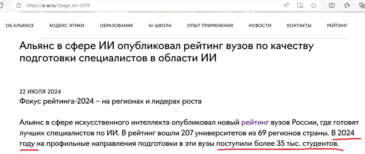 Новый рейтинг вузов России, готовящих специалистов по ИИ, выпустил Альянс в сфере искусственного интеллекта. Первый такой рейтинг опубликовали в ноябре прошлого года, и позиция в нем уже влияет на количество бюджетных мест в магистратуре и аспирантуре.