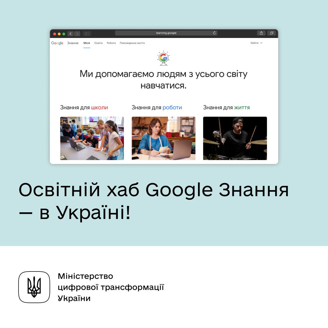 ✅ Знання для школи – включає ресурси Google, призначені для освітян, учнів та їхніх батьків, щоб відкрити нові інструменти для навчання і викладання онлайн.