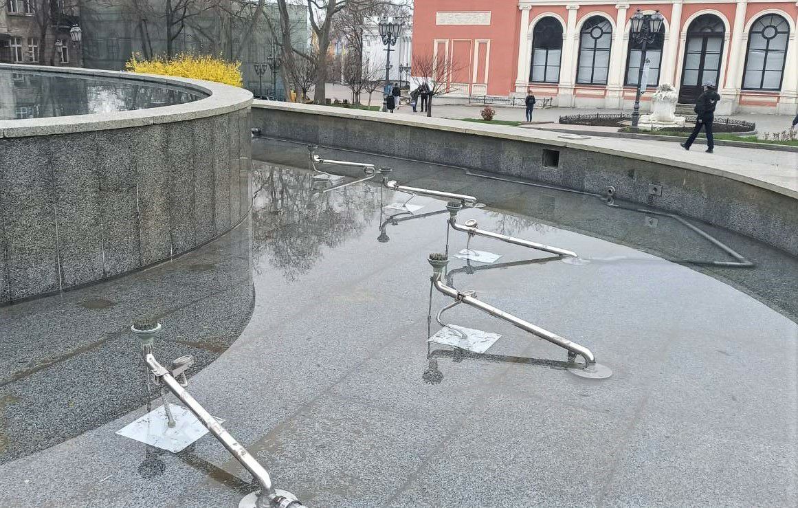 Вчора, 12 квітня 2021 року, невідомі пошкодили трубопровід, що веде до форсунки нижньої чаші фонтану, розташованого на Театральній площі.