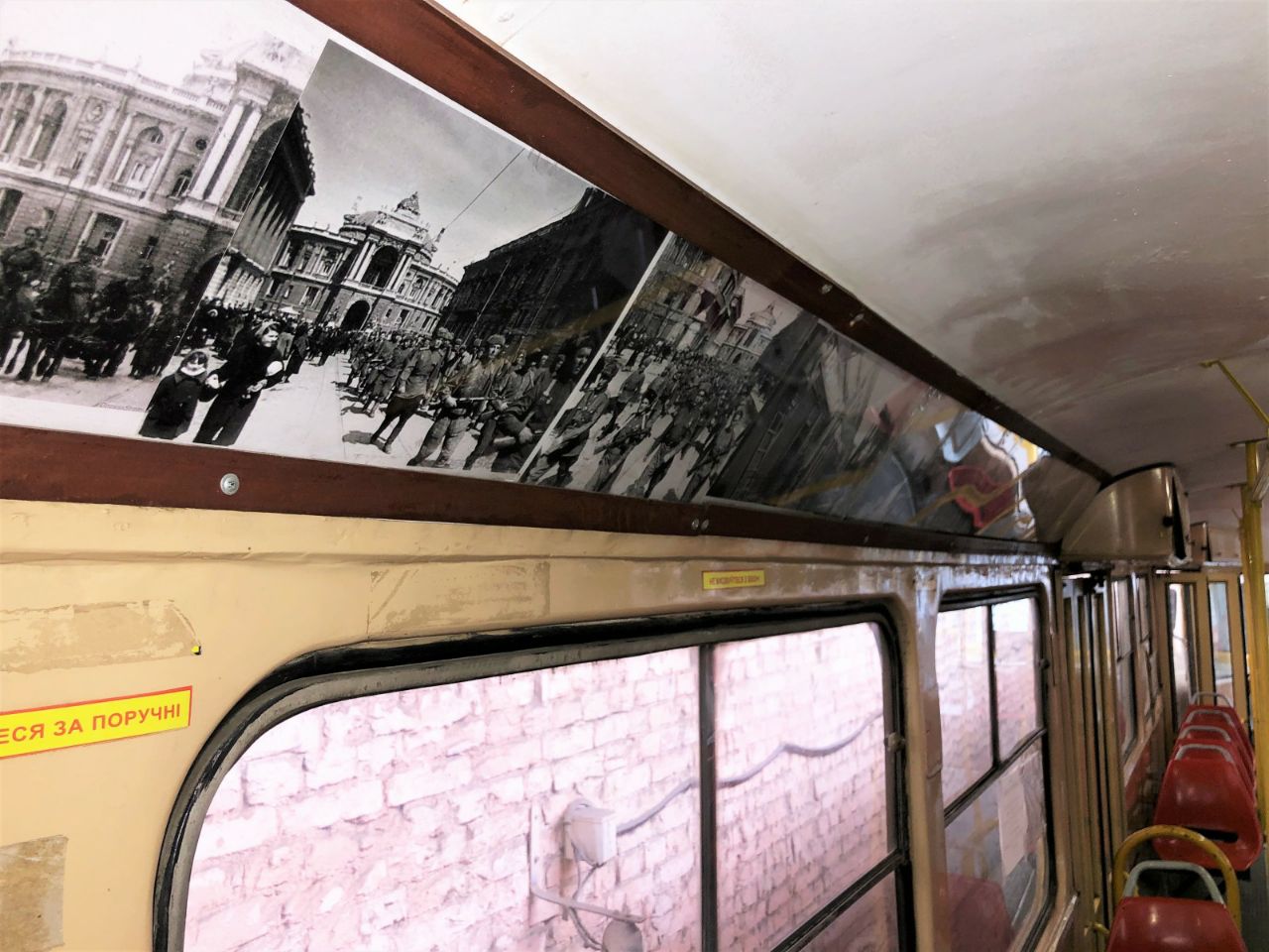 Вперше трамвай-галерея вийшов на маршрут у 2018 році, напередоднi 10 квітня - Дня визволення Одеси від нацистських окупантів. За ці роки в галерейному трамваї відбулися тематичні фотовиставки до Дня Незалежності і Дня вишиванки, а також «Одеса з висоти пташиного польоту». Автор ідеї - Олександр Вельможко.