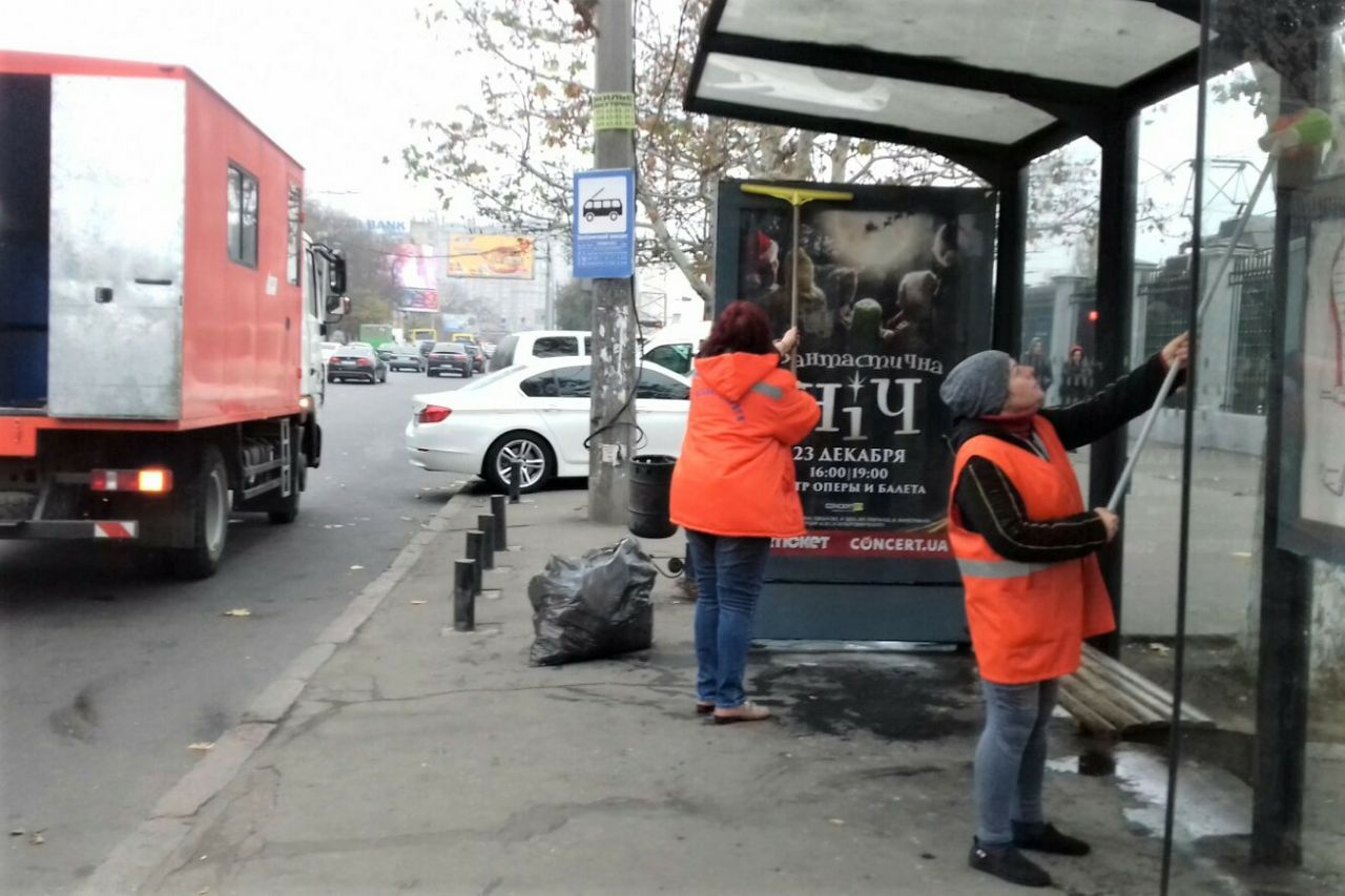 На минувшей неделе специалисты коммунального предприятия «Городские дороги» выполняли работы по помывке остановочных комплексов, восстановлению плиточного покрытия и брусчатки по улицам Одессы.