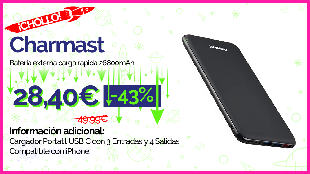 💥🔉Charmast - Batería externa carga rápida 26800mAh #Amazon