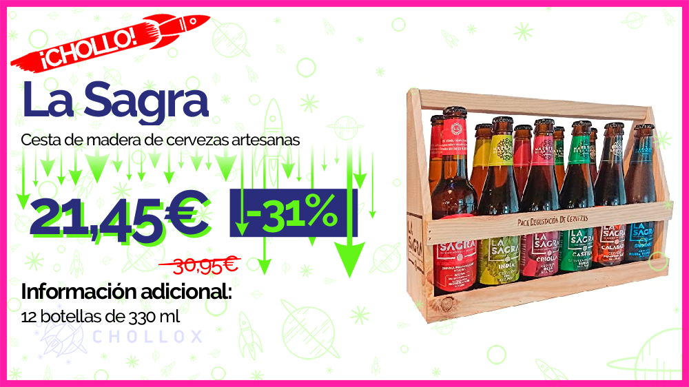 💥🔉La Sagra cesta de madera de cervezas artesanas. 12 botellas de 330 ml #Amazon