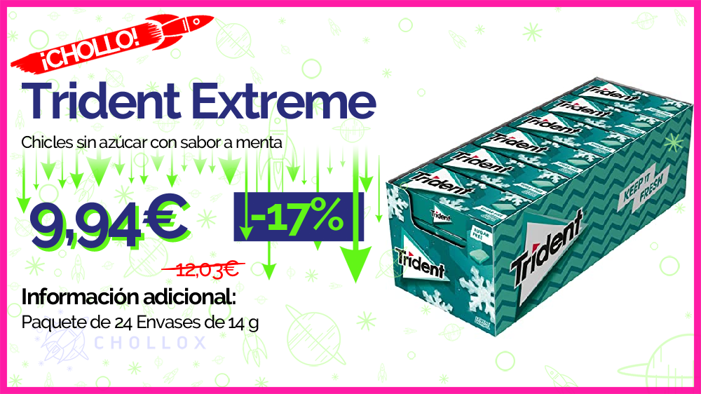 💥🔉Trident Extreme Menthol - Chicles sin azúcar con sabor a menta - Paquete de 24 Envases de 14 g #Amazon