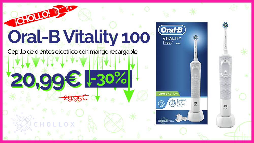💥🔉Oral-B Vitality 100 - Cepillo de dientes eléctrico con mango recargable #Amazon