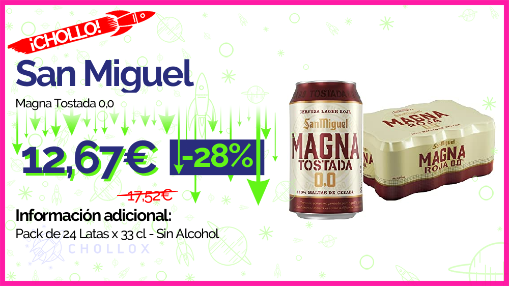 💥🔉San Miguel Magna Tostada 0,0 - Pack de 24 Latas x 33 cl - Sin Alcohol #Amazon