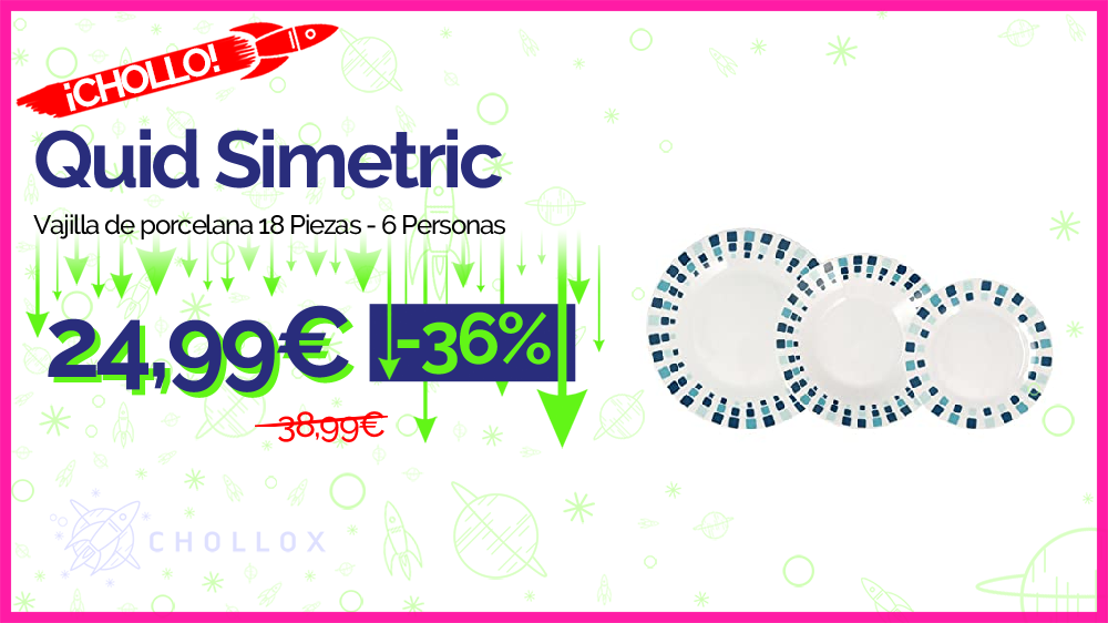 💥🔉Quid Simetric - Vajilla de porcelana 18 Piezas - 6 Personas #Amazon