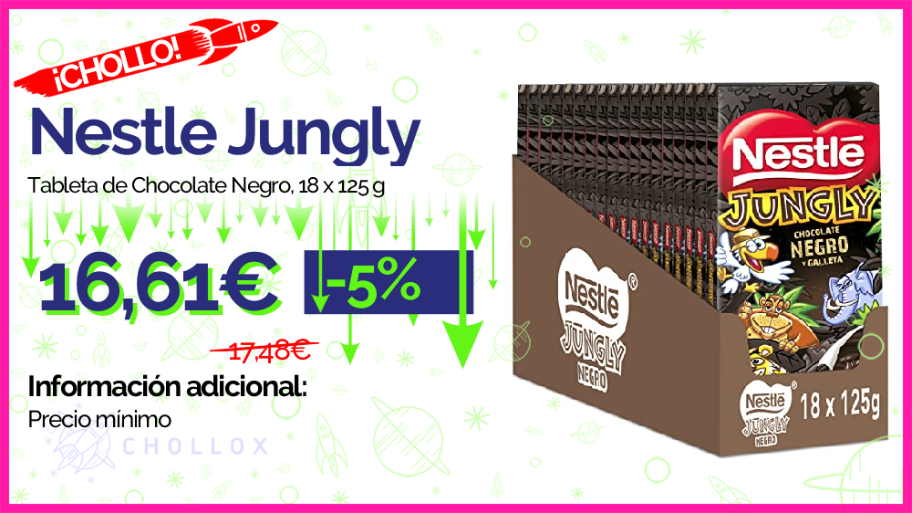 π₯πNestle Jungly Tableta de Chocolate Negro, 18 x 125 g #Amazon