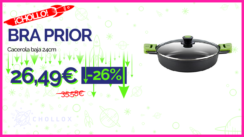 π₯πBRA PRIOR - Cacerola baja con tapa de cristal y asas de silicona, apta para todo tipo de cocinas incluida inducciΓ³n y horno, 24 cm #Amazon